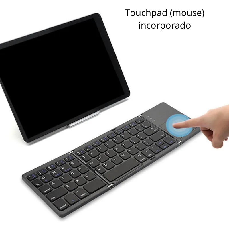 Teclado Bluetooth Plegable Ultra Delgado con Panel Táctil – Trabaja Donde Quieras, Sin Límites¿ Cansado de escribir en teclados incómodos y pequeños cuando estás fuera de la oficina? Este teclado Bluetooth plegable ultra delgado es la solución perfecta para trabajar con comodidad y eficiencia, estés donde estés. Con un diseño compacto que cabe en el bolsillo de tu chaqueta o bolso, podrás llevarlo a reuniones, viajes, conferencias o trabajar en cualquier cafetería. Se pliega en segundos y se guarda en su estuche rígido, protegiéndolo mientras te acompaña a todas partes. A pesar de su tamaño, ofrece una experiencia de escritura cómoda y fluida, con atajos de teclado compatibles para Windows, Android e iOS, para que no pierdas productividad mientras te mueves. Por qué lo vas a amar: Portabilidad total: mini, ligero y fácil de plegar con panel táctil, Conexión estable por Bluetooth con alcance de hasta 10 metros.67 teclas ergonómicas para escribir sin esfuerzo. Compatible con teléfonos, tabletas y más. Perfecto para viajes de trabajo, estudio y uso diario. Especificaciones: Interfaz: Bluetooth Alcance: <10 Activación: cualquier tecla Disposición: 67 teclas Dimensiones: 31,5 x 8,8 x 0,9 cm Compatibilidad: Windows, Android, iOS📦 Llévalo contigo y transforma cualquier lugar en tu espacio de trabajo.